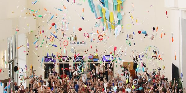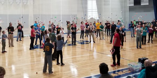 Jugglers compete to juggle the most balls, clubs, and rings, for the most number of catches.