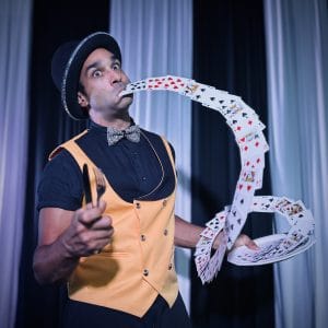 Alexander D’Mazing is a modern-day vaudevillian entertainer who artfully combines magic, circus, and theatrical brilliance. When he comes around, D’Mazing stuff happens. Audiences in thirty three states and eleven countries are still picking up the pieces of their minds being blown—some have even started carrying spare minds, just in case.