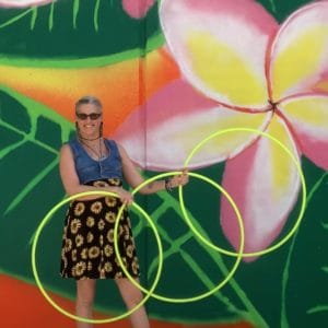 Jasmine Kienne, aka hothoopdancemama on Instagram, Tiktok and YouTube, has been teaching and performing hooping for 13 years.