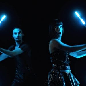 Her flow strives to create, through symmetrical geometrical shapes, a mesmerizing and methodical hoop visual experience. She has incorporated a third hoop into her flow as well as some basic juggling patterns and cascade escalators.